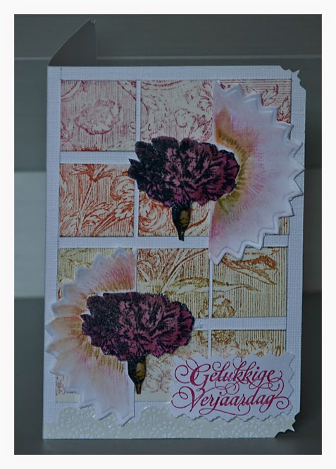 Een EASELkaartje met op de achtergrond scrapbookpapier van Voordeelboek